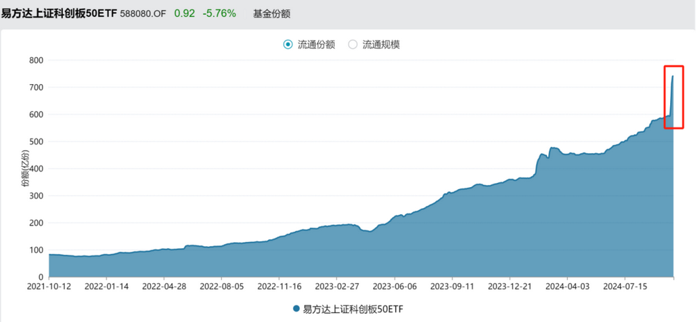 截至10月10日,易方达上证科创板50ETF的基金份额总额和基金规模分别达到740.42亿份、723.09亿元。三季度以来,该ETF被净申购255.93亿份。