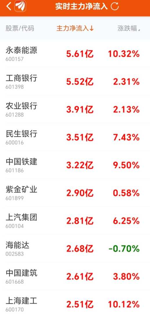 今日,银行、煤炭等板块成为主力资金抢筹的对象,其中银行板块净流入资金达到39.77亿元,显示出市场对防御性板块的青睐。