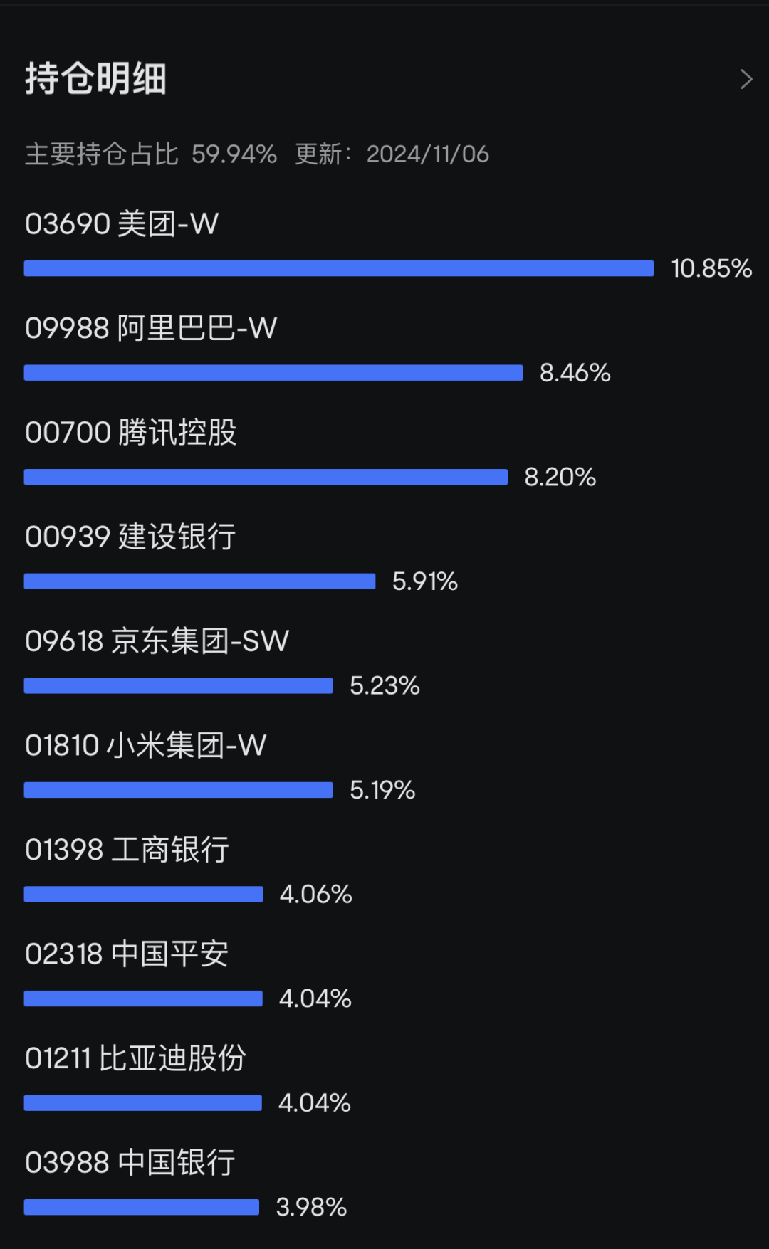 根据富途数据,截至11月7日,中国大盘股ETF-iShares的资产规模相较于9月30日增长了52.73亿美元,最终突破100亿美元大关。该ETF自8月底开始便逐月猛增,显示出外资对中国大盘股的强烈兴趣。从持仓情况来看,该ETF前十大重仓股包括美团、阿里巴巴、腾讯控股等知名企业,这些公司在港股市场上具有较大的市值和良好的流动性。