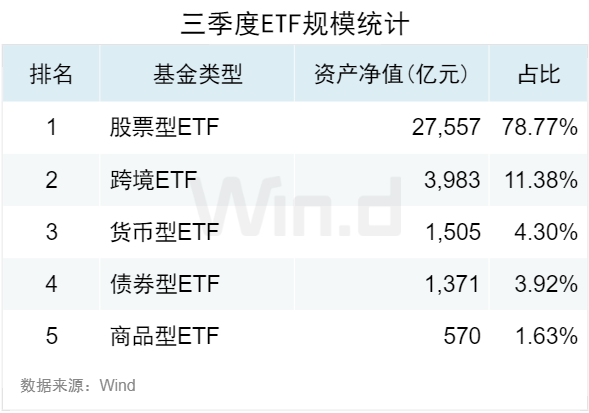 在这庞大的市场中,非货币ETF占据了主导地位,规模高达3.35万亿元。