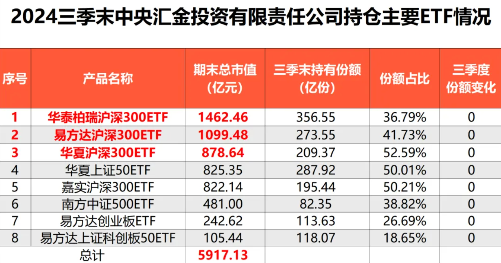 值得注意的是,根据最新披露的基金三季报,今年三季度,中央汇金投资及中央汇金资产等“国家队”资金合计持有的主流股票ETF市值已超过9400亿元,是去年末持仓总市值的8倍以上。这一数据进一步凸显了ETF在市场上的重要地位。