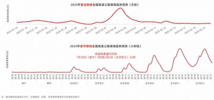 受春节期间走亲访友习俗的影响,1月30日(正月初二)11时至12时,全国高速公路或将迎来一个短暂的拥堵小高峰。