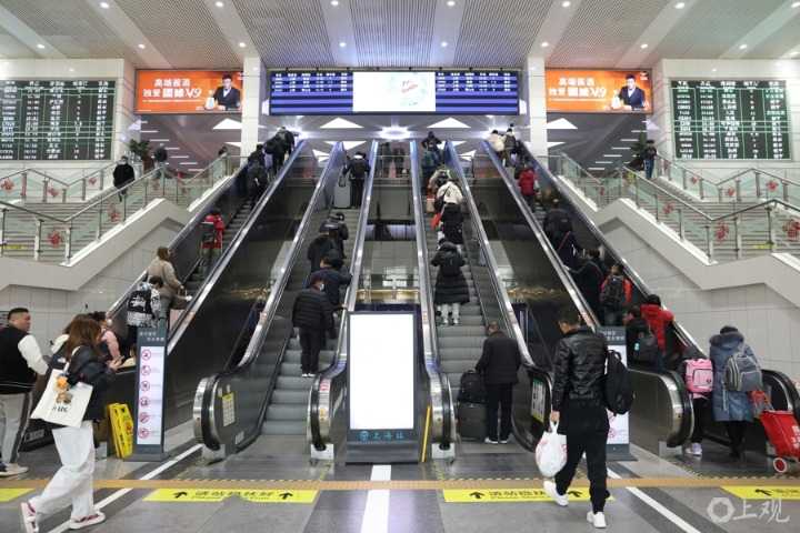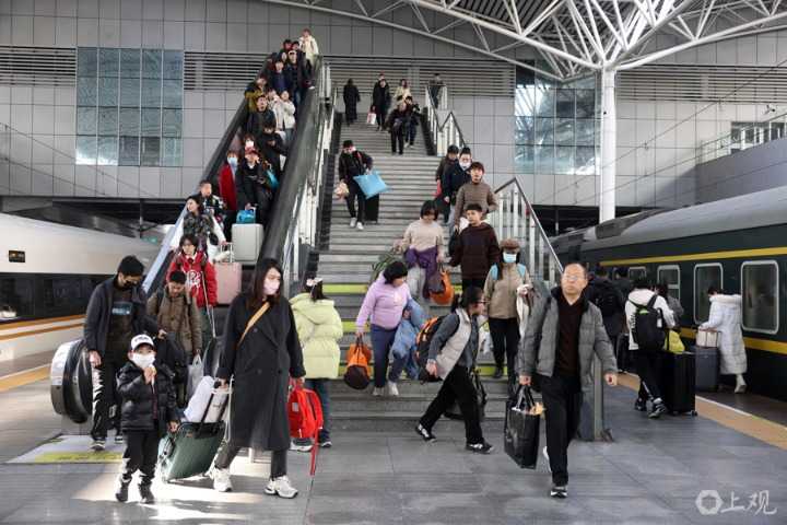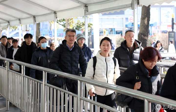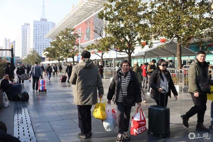 1月13日下午,众多旅客提前前往上海站,准备踏上归途。