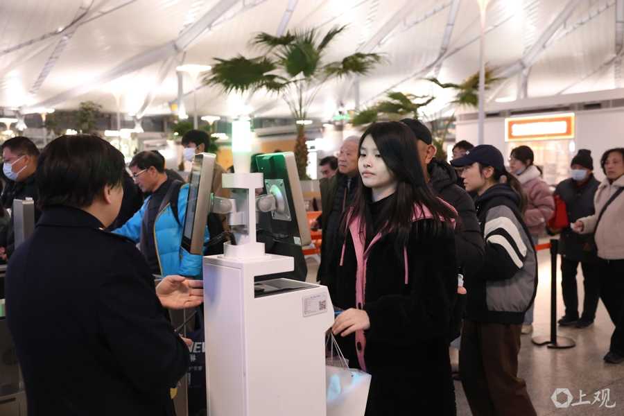 上海站客流密集,安检通道全面开启,现场秩序井然。