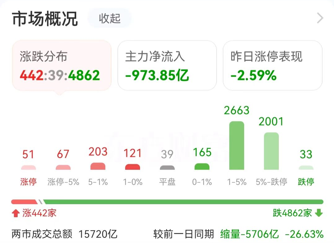 今日(10月11日),市场遭遇全天震荡下行,沪指盘中一度失守3200点大关,创业板指则领跌市场。两市全天成交额显著缩减至1.57万亿元,相比前一交易日减少了5706亿元。截至收盘,沪指下跌2.55%,深成指下跌3.92%,创业板指更是大幅下跌5.06%。