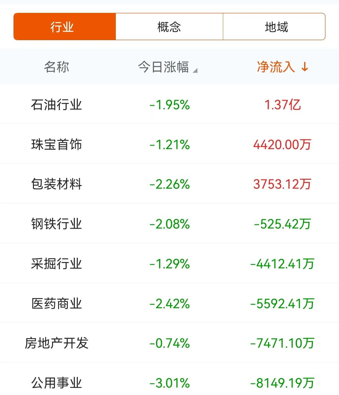 今日市场主力资金积极涌入石油行业、珠宝首饰等板块,其中石油行业板块更是获得了1.37亿元的主力资金净流入。