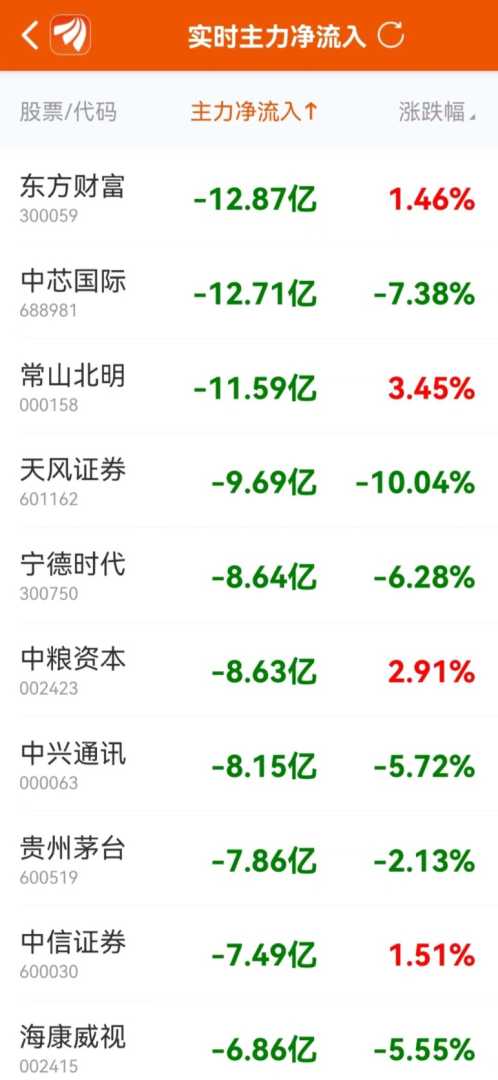 同时,在主力净卖出方面,中芯国际和常山北明等个股也备受关注。其中,中芯国际排名第二,主力净卖出金额高达12.71亿元;常山北明排名第三,主力净卖出11.59亿元。