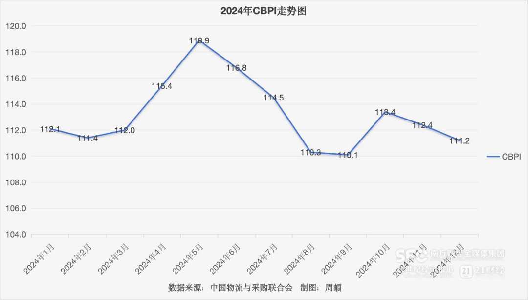 中国物流与采购联合会发布的中国大宗商品价格指数(CBPI)也揭示了市场的波动。该指数从1月的112.1点开始,逐渐攀升至5月的年内高点118.9点,随后回调至9月的低点110.1点。四季度虽有小幅回升,但最终在12月录得111.2点。