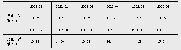 注4:自2022年12月起,“流通中货币(M0)”包含流通中的数字人民币。截至12月末,流通中数字人民币余额为136.1亿元。经过修订,2022年各月末M1、M2增速无明显变化,但M0增速有所调整。