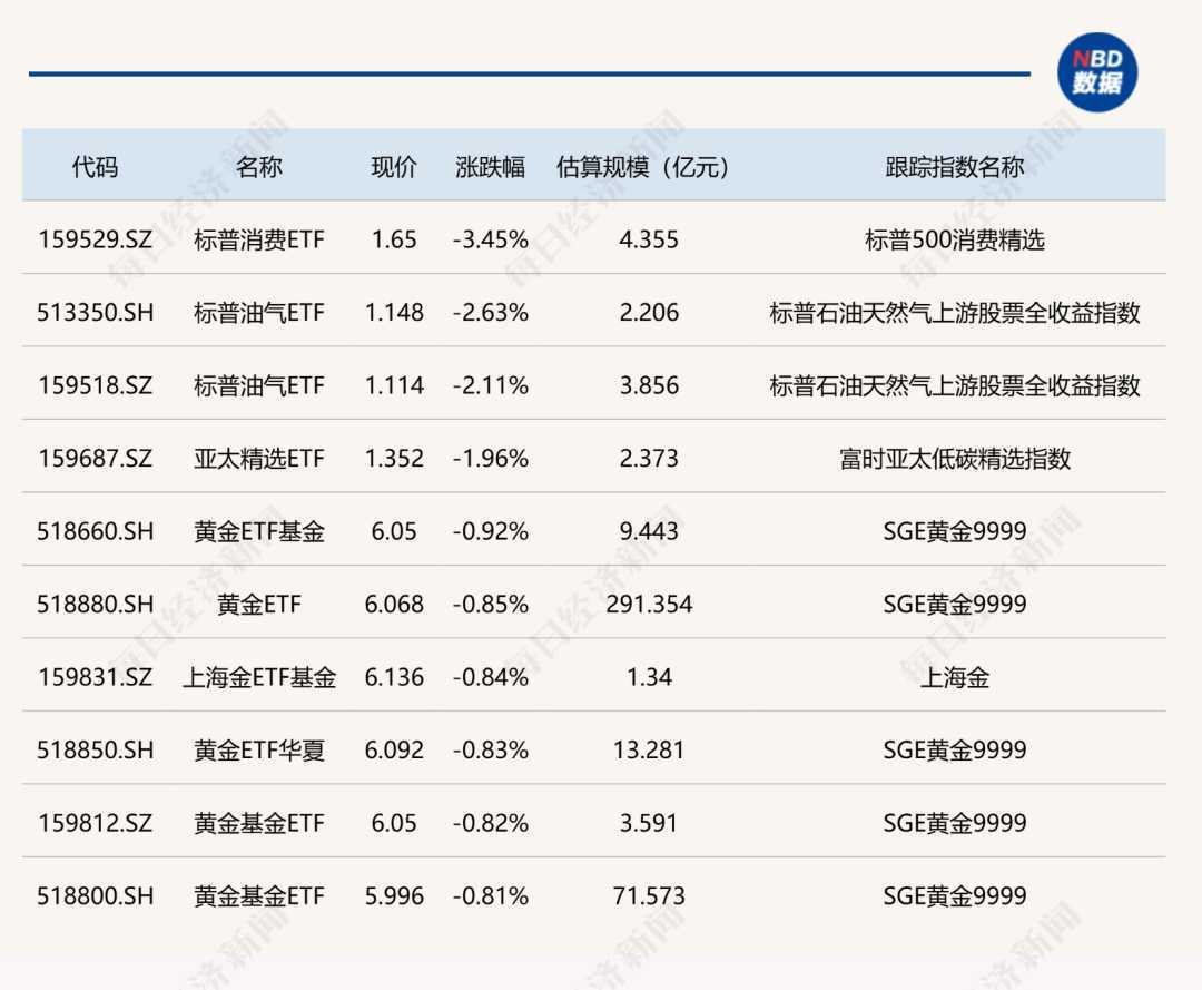 在下跌方面,标普消费ETF跌幅超过3%,标普油气ETF跌幅也超过2%。