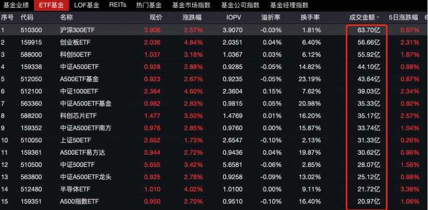 从资金面来看,互联网服务、软件开发、半导体、证券、通信设备等板块主力资金净流入居前。资金的大量流入为股市的上涨提供了有力支撑,尤其是科技等热门板块的资金流入,更是带动了相关个股的大幅上涨,进一步活跃了市场氛围。此外,沪深300等核心宽基ETF也再次放量,以华泰柏瑞沪深300ETF为例,14日上午的成交量已经超过前一个交易日全天,截至收盘,其成交量近64亿元。易方达创业板ETF、华夏科创50ETF成交量均超过55亿元,而国泰基金、华夏基金以及南方旗下3只中证A500ETF成交额均超过或接近40亿。