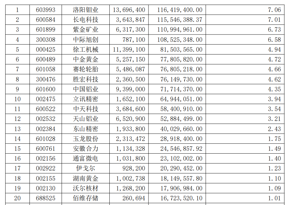 另外,邓晓峰管理的两只产品今年二季度加仓了云铝股份420万股,期末合计持股数量增至6020万股。
