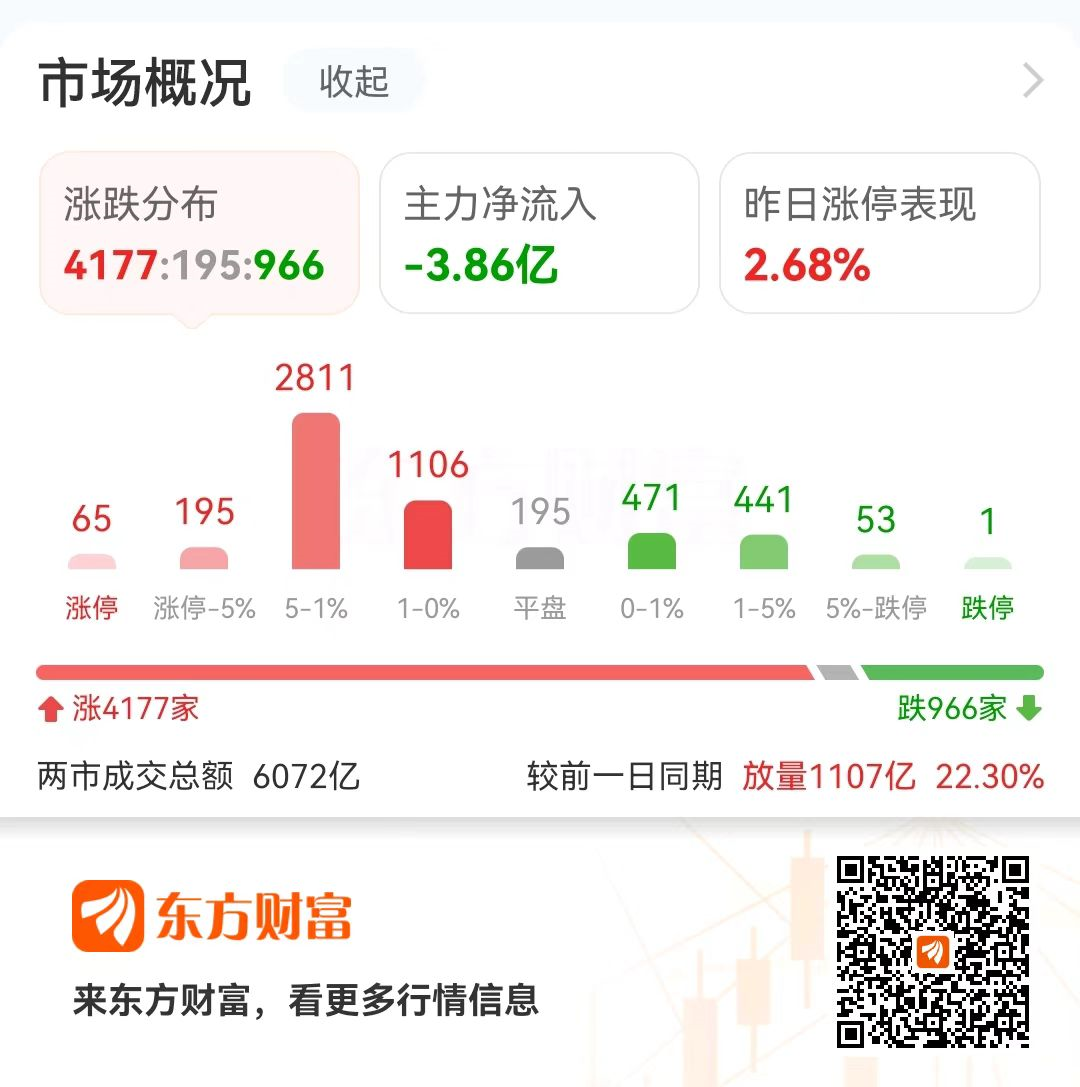 今日(8月29日),A股市场呈现震荡分化格局,深成指与创业板指表现强劲,分别收涨0.94%和0.65%,而沪指则出现调整,下跌0.5%。全天两市成交额显著放大,达到6072亿元,较前一交易日增加了1107亿元。市场交投活跃度有所提升。