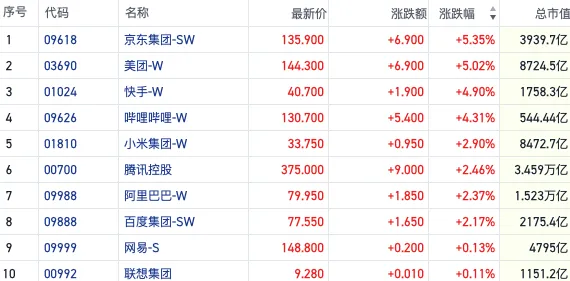 回顾今日的市场热点,权重股的强势发力成为推动恒指站上19000点的主要因素。具体来看,大型科技股集体走高,其中京东和美团的涨幅均超过了5%,快手上涨超过4%,腾讯和阿里巴巴的涨幅也均在2%以上。此外,中字头权重股及金融股也携手上涨,为指数行情提供了有力支撑,中信证券涨幅接近6%,招商银行上涨4.3%,新华保险涨幅超过3%。