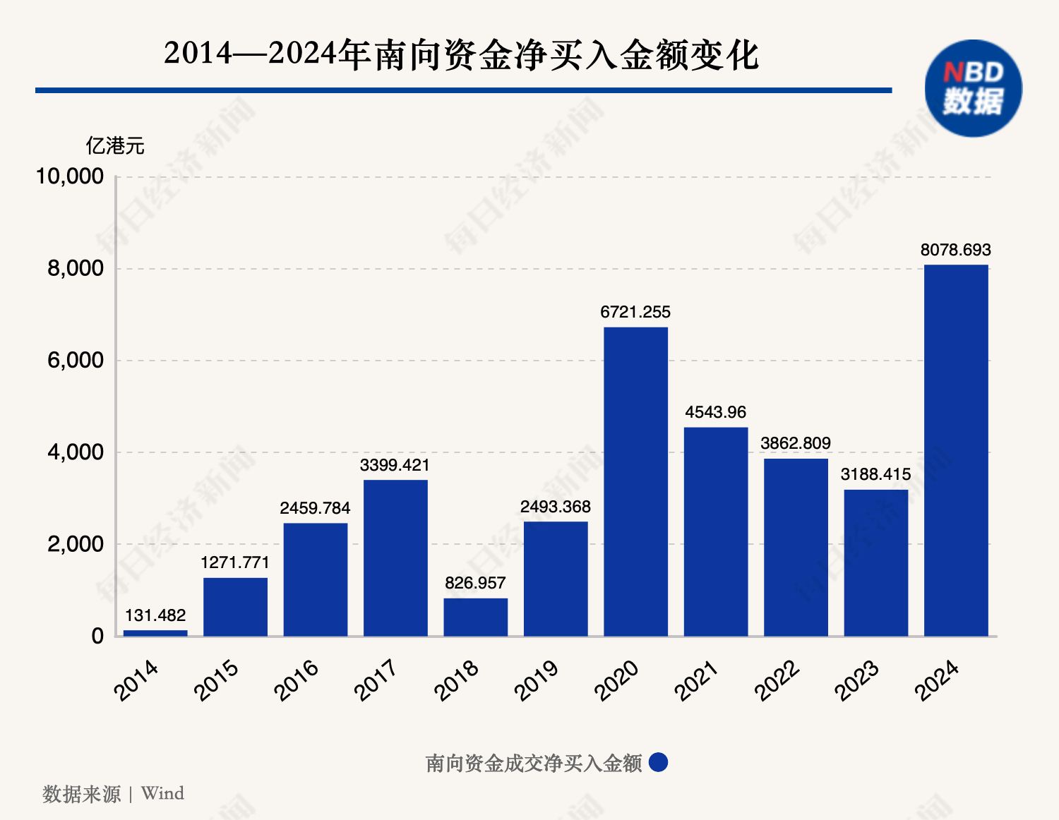 2024年南向资金对港股的热情重燃,全年净买入金额和规模均刷新互联互通以来的新纪录。港股市场在连续四年下跌后年度收益首次转正,内地银行股和高分红股票成为南向资金的重点关注对象。尽管存在风险,但港股在2025年依然具备投资价值。