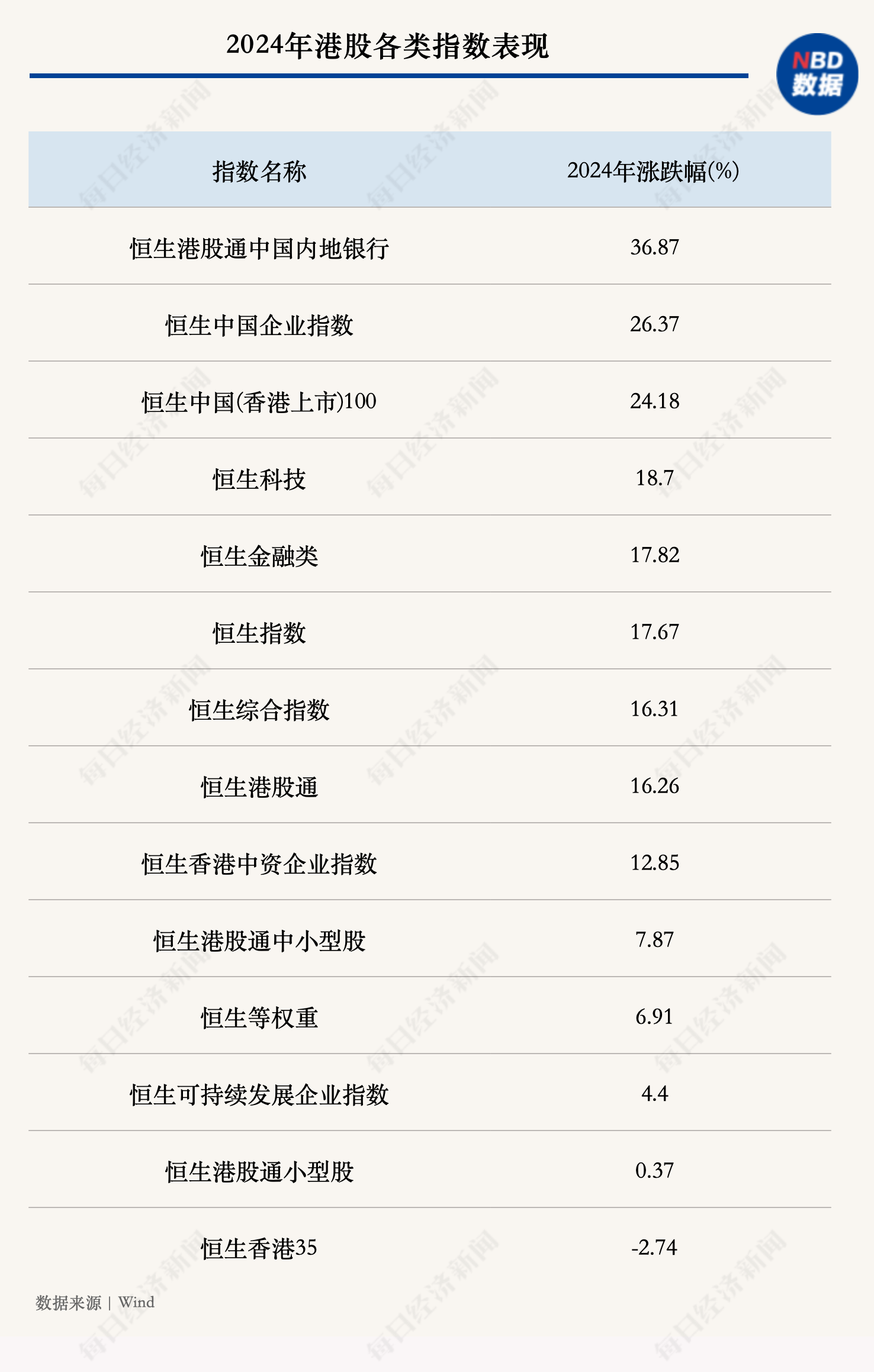 2024年,港股在连续四年下跌后首次实现年度收益转正。其中,恒生港股通中国内地银行指数以36.87%的涨幅领先,恒生指数、恒生科技指数和恒生中国企业指数也均实现了上涨。南向资金在港股交易中扮演着重要角色,据统计,2024年12月底期间,南向资金成交在港股整体交易的占比约至30%。