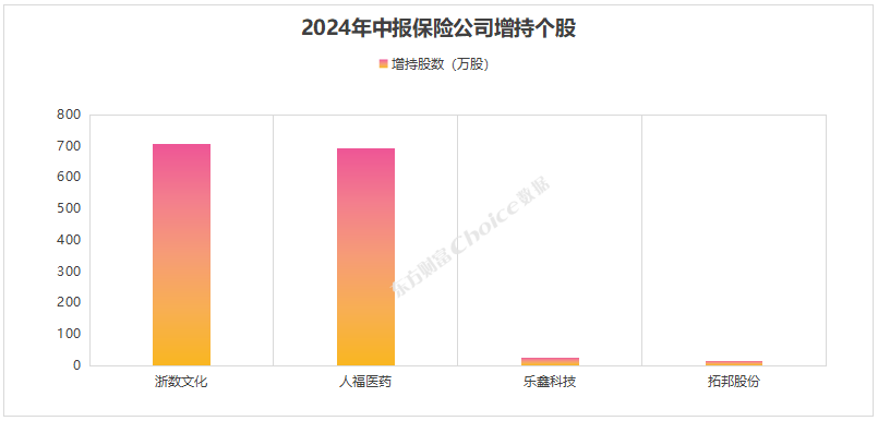 在获得保险公司增持的个股中,浙数文化增持股数最多,共计707.63万股,增持市值4083.98万元;人福医药紧随其后,增持股数总计692.89万股,增持市值4777.11万元。