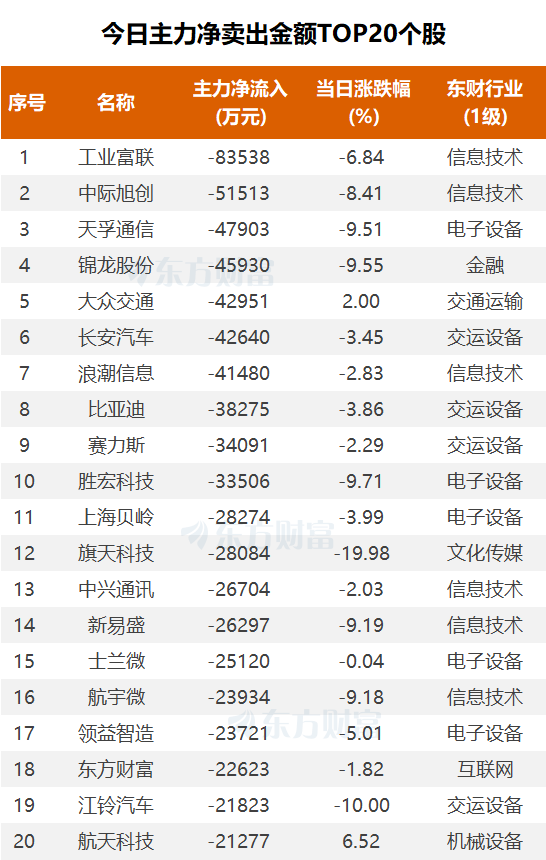 与此同时,在主力净卖出方面,工业富联以8.35亿元的净卖出额高居榜首,中际旭创则以5.15亿元的净卖出额位列第二。这些数据反映了主力资金在个股上的不同布局和策略。
