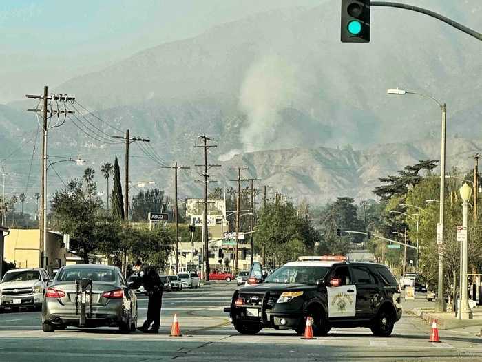 2025年1月9日下午15时30分,帕萨迪纳市向重灾区方向的道路已经被封锁。(摄影:陈思语)