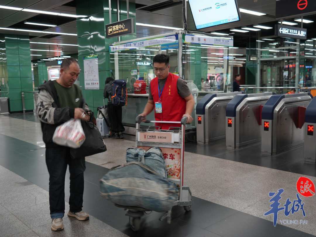除了延长服务时间,广州地铁还在广州南站、广州火车站等9个重点枢纽车站上线“平安春运守护团”,设置“平安驿站”,为广大返乡乘客提供行李打包搬运及乘车指引服务。同时,在与客运枢纽相连的车站设有“绿色通道”,方便携带大件行李的乘客快速通行。地铁乘车携带行李的标准是长宽高总和不超过1.8米,花市期间,13个临近花市的车站将提供“花市文明剪”,帮助乘客修剪超长花枝。