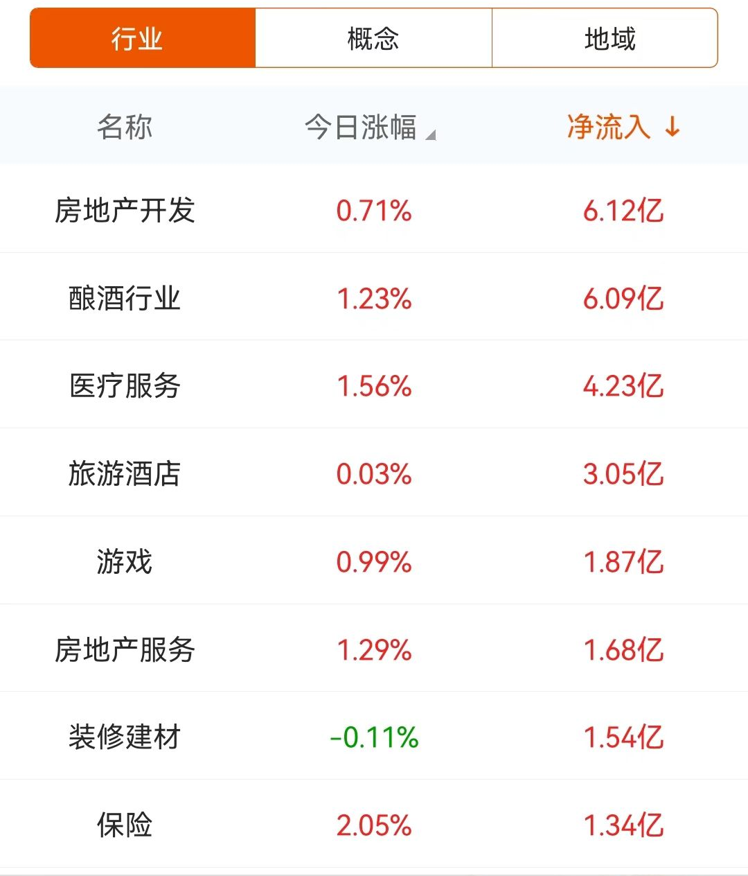 今日,地产开发、酿酒等板块受到主力资金的青睐,净流入显著。其中,地产开发板块的主力资金净流入达到6.12亿元。