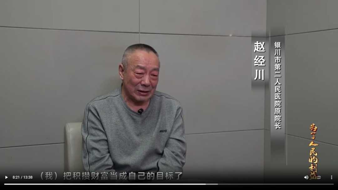 专题片还详细揭露了银川市第二人民医院原院长赵经川的贪腐事实。在2004年至2020年间,赵经川利用职务之便,为多名私营企业主和医疗器械代表在承揽工程、拨付工程款、采购医疗器械和耗材等方面提供便利,先后33次收受好处费,折合人民币共计297.15万元。2024年,赵经川被开除党籍,取消退休待遇,并被判处有期徒刑6年,处罚金35万元。赵经川在供述中表示:“我把积攒财富当成了自己的目标。有一次,一个医疗设备供应商来找我,说医院有一个价值100多万的设备采购项目,希望我能帮忙。我连犹豫都没犹豫就答应了他,后来他中标后就给了我10万元好处费。”