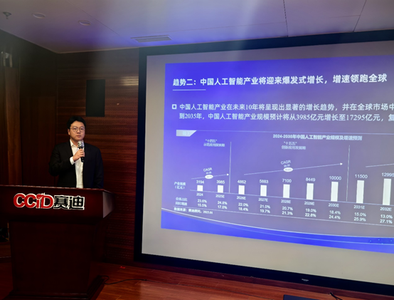 近日,赛迪顾问在“2025年IT趋势”发布会上揭示了中国人工智能产业的未来发展蓝图。据赛迪顾问人工智能与大数据研究中心高级分析师白润轩预测,从2025年至2035年,中国人工智能产业规模预计将从3985亿元增长至17295亿元,复合年增长率为15.6%,展现出强劲的增长势头,并有望在全球市场中占据关键地位。
