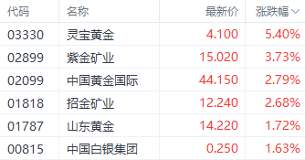 受隔夜国际金价重返2700美元大关的积极影响,港股市场中的黄金股板块表现抢眼。截至本文发布,灵宝黄金(03330.HK)股价飙升5.40%,紫金矿业(02899.HK)上涨3.73%,中国黄金国际(02099.HK)亦录得2.79%的涨幅,显示出市场对黄金资产的强劲需求。
