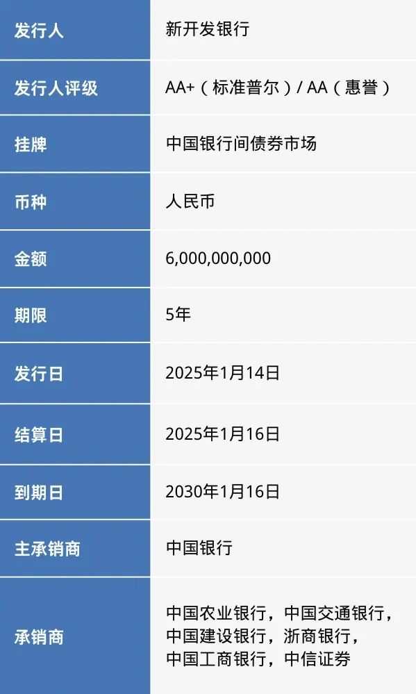 新开发银行副行长兼首席财务官Monale Ratsoma对此表示:“此次60亿元人民币债券的成功发行,充分展现了投资者对新开发银行的强烈需求,进一步巩固了我们在熊猫债券市场中的多边开发银行最大发行人地位。这不仅标志着新开发银行在履行其金砖国家及其他新兴市场国家和发展中国家基础设施和可持续发展项目资源调动承诺上的又一重要里程碑,也与我们2022-2026年总体战略中扩大本币债券在岸和离岸发行的目标高度契合,旨在拓宽资金渠道,提升资金规模。”