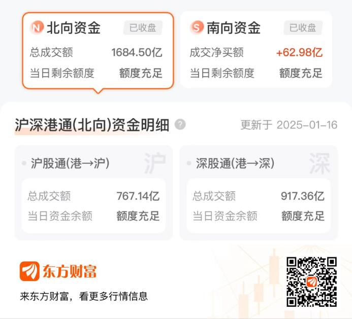 1月16日,中国A股市场呈现震荡反弹态势,上证指数、深证成指以及创业板指均实现了小幅上涨。当天,北向资金在A股市场的交易活跃度显著,成交额高达1684.50亿元,这一数字占据了沪深两市总成交额的13.22%,显示出外资对中国资本市场的持续关注和积极参与。