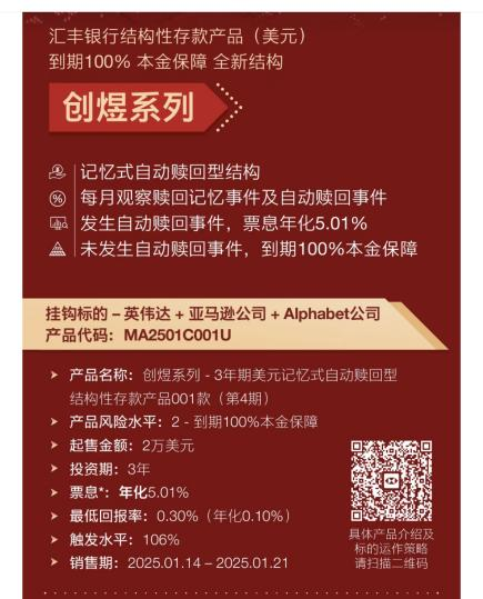 渣打银行的理财经理表示,该行正在发行多款挂钩中概股票、日本股票、指数ETF等结构性存款产品,其中挂钩科技主题美股(美元款)产品的年化收益率最高可达8%,投资期限为12个月,最低认购金额为7万美元。汇丰银行则推出了三年期美元结构性存款产品,最低认购金额为2万美元,到期100%本金保障,最高年化收益率在5%左右,但需要达到一定的触发条件。