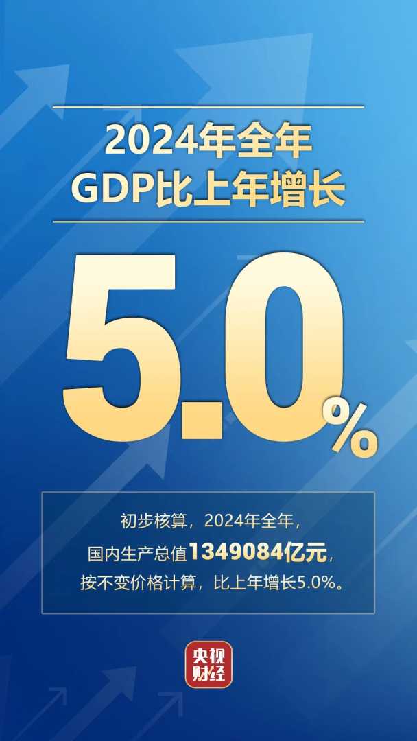 今天上午十点,国务院新闻办如期举办了新闻发布会,会上,国家统计局的相关负责人向公众介绍了最新的经济数据:据初步核算,2024年全年,我国的国内生产总值(GDP)达到了1349084亿元,在不变价格的计算口径下,相较于去年,实现了5.0%的增长。这一数据不仅彰显了我国经济的稳健复苏态势,也反映了国家政策在促进经济增长方面的积极成效。