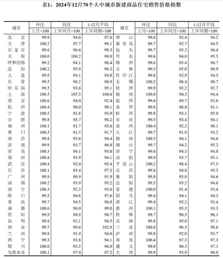 2024年12月70城房价数据出炉:一线城市环比上涨