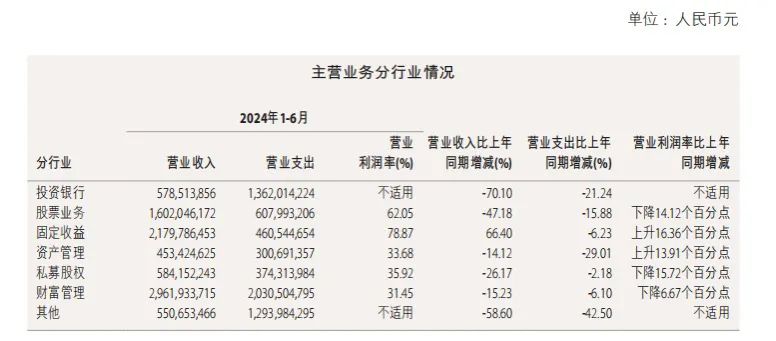 除了这次被罚事件外,中金公司投行业务“走下坡路”也备受市场关注。据2024年半年报显示,今年上半年中金公司投资银行分部营业收入较去年同期大幅下降70.1%。同时,行业盈利同比下行,投行业务收入承压。