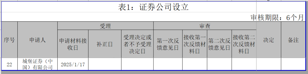 市场长期关注城堡证券是否会在境内设立证券公司。2024年1月,有传言称城堡证券正计划收购原瑞士信贷在华证券业务。然而,2024年6月,北京国资官宣将入主瑞信证券,城堡证券的这一交易也随之告吹。时隔7个月后,中国证监会正式接收了城堡证券在华设立证券公司的申请。