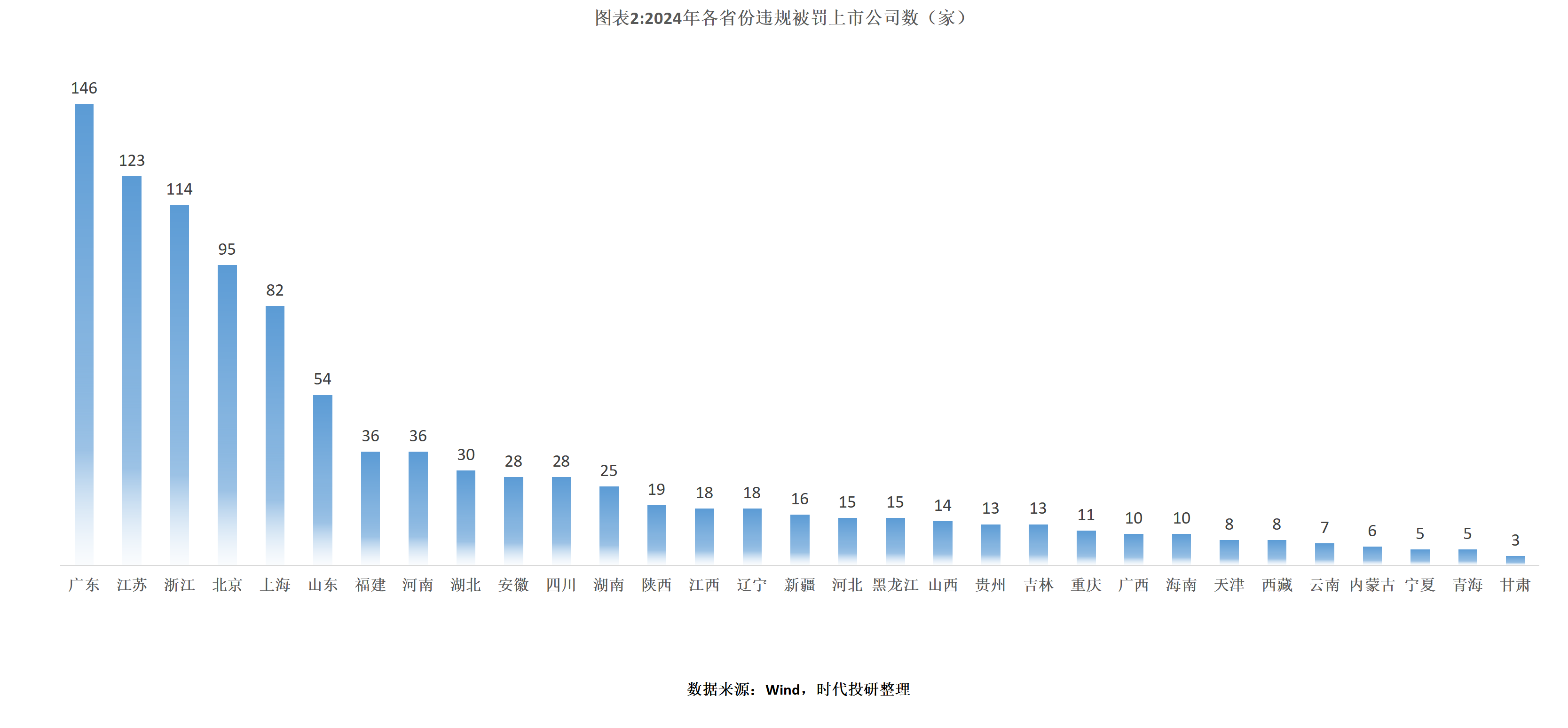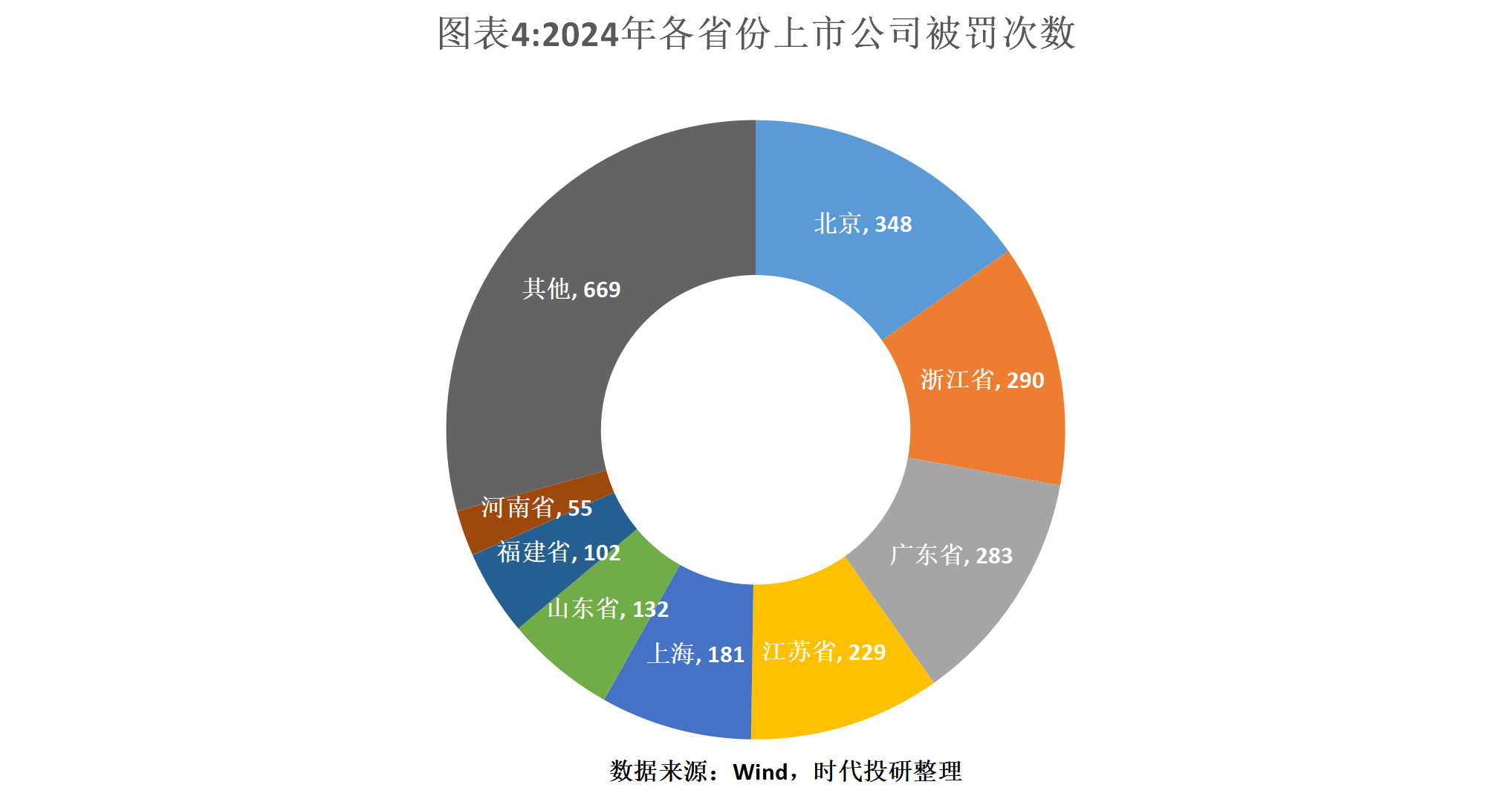 1. A股违规被罚上市公司数量激增。2024年,共有1011家A股上市公司因违规被罚,同比增长13%;罚单总数达2289张,同比增长16%。广东和北京分别在被罚上市公司数量和总罚单数上位居全国前列。金融业成为违规“重灾区”。