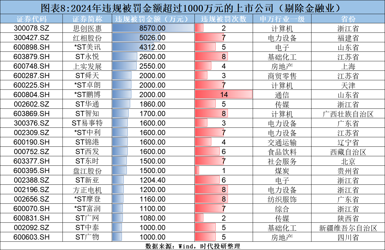 2024年A股违规被罚公司激增,金融业与实体企业成重灾区