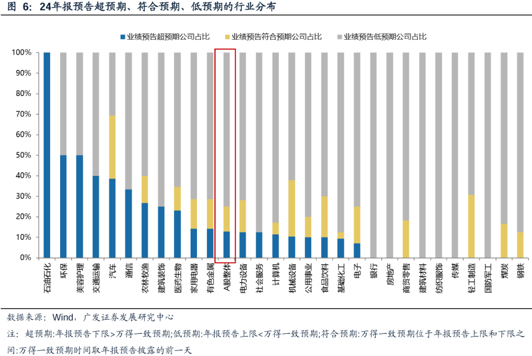 截至目前,24年业绩预报的披露情况显示,业绩预告“预喜率”较高的行业包括农业、电机、乘用车、农化、摩托车等;而业绩预告“超预期”占比较高的行业则包括石油石化、环保、美护、交运等。