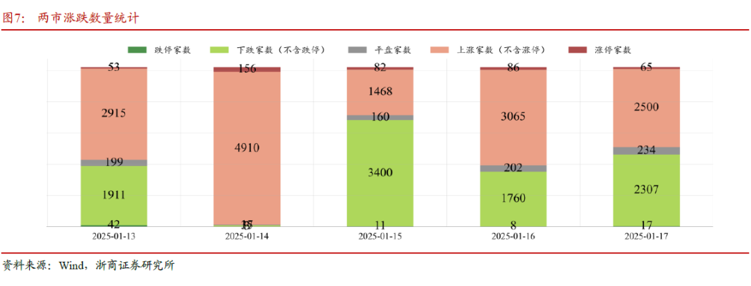本周(2025-01-13至2025-01-17),国内主要宽基指数与中信一级行业均呈现全面上涨态势。展望未来市场走势,随着上证指数在3087-3152区域成功止跌并展开反弹,本轮调整的“左脚”形态已得到确认,该区域也被初步视为底部区间。然而,需注意的是,年初市场的快速下跌已对技术结构造成一定破坏,加之外部不确定性因素犹存(例如特朗普就任可能带来的市场影响),同时春节前夕交易日有限,部分资金可能选择观望,因此市场有望在春节前后继续震荡,以构筑“右脚”形态。