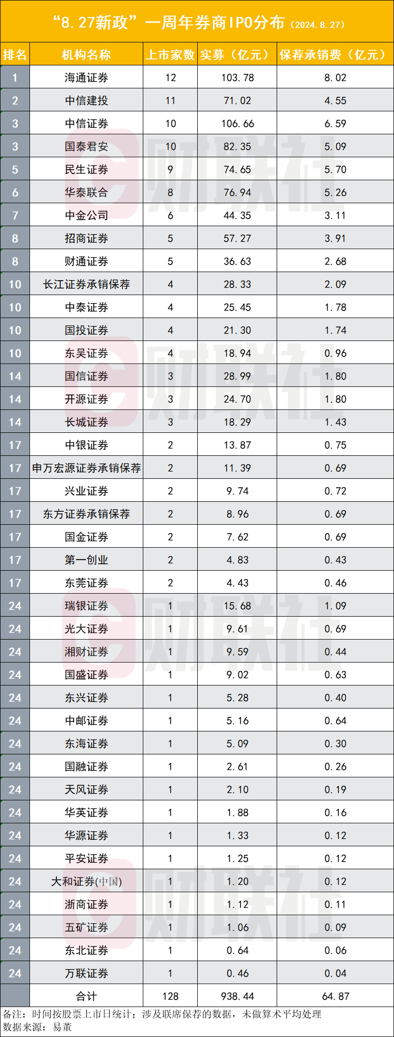 这一年里,40家券商参与了IPO保荐承销业务,其中海通证券保荐数量最多,达到12单。中信建投、中信证券、国泰君安等券商也均有不俗表现。