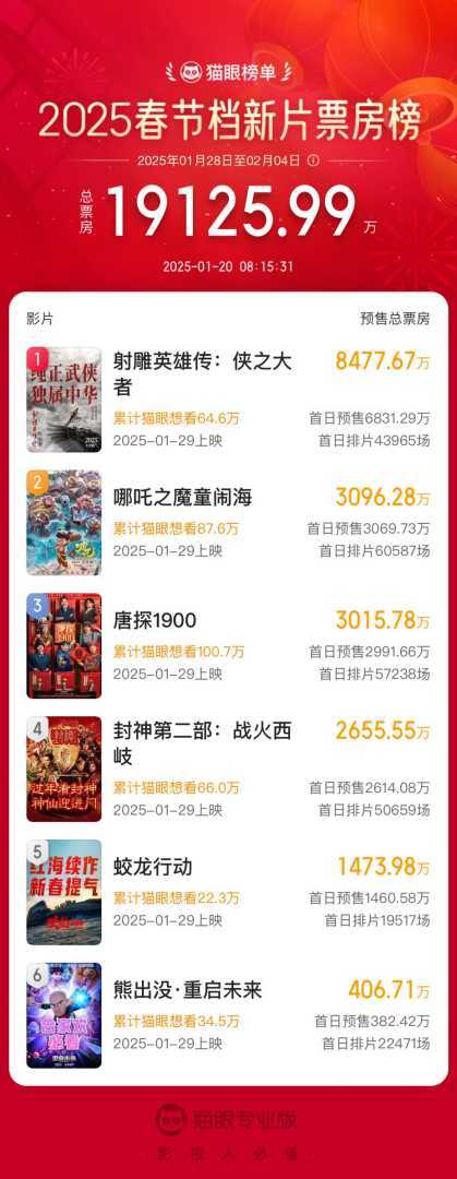 2025年春节档电影市场预售火爆,多部大片蓄势待发