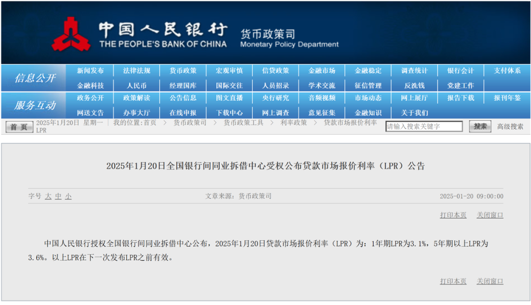2025年1月20日,市场瞩目的1月LPR报价正式揭晓。据央行官方网站发布,本月LPR维持不变,其中1年期为3.1%,5年期以上为3.6%。
