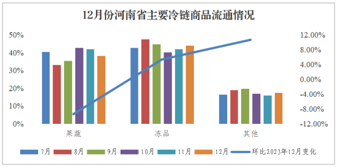 图表展示了2024年12月份河南省主要冷链商品的流通情况。