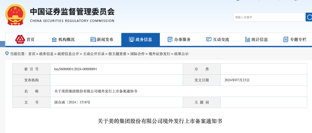 7月23日晚间,家电巨头美的集团正式对外公告,宣布其H股发行上市已获得中国证券监督管理委员会(简称“中国证监会”)的备案批准。