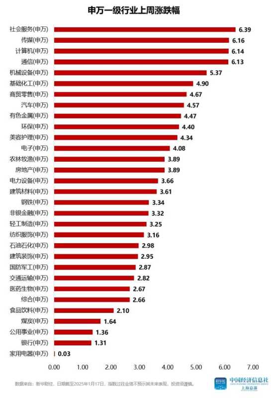 在行业表现方面,申万一级行业指数全部呈现上涨态势。社会服务、传媒、计算机、通信及机械设备等行业涨幅领先,而家用电器、银行及公用事业等行业涨幅相对较小。