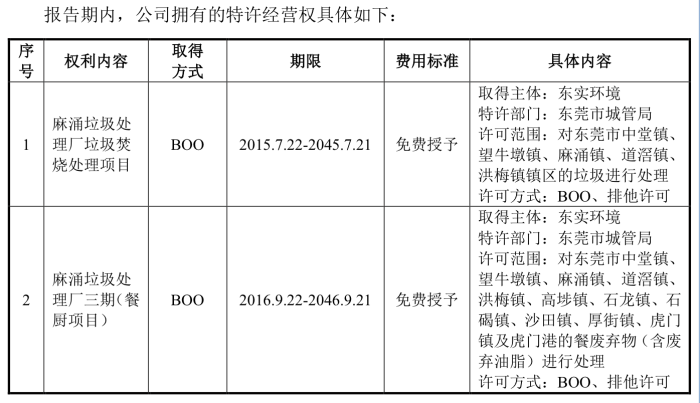 截至2023年底,东实环境特许经营权项目中的垃圾焚烧处理项目和餐厨垃圾处理项目分别剩余约22年和23年的经营期限。