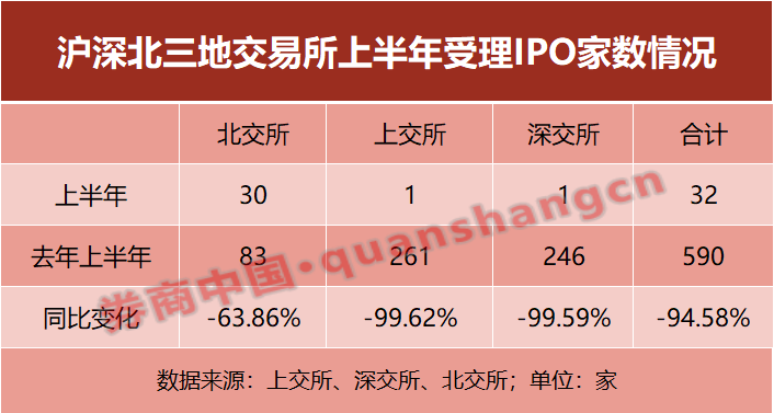 此外,今年上半年IPO市场新增受理的32家企业,与去年同期相比大幅下滑。这一趋势反映出,在严监管背景下,IPO市场的竞争将更加激烈。