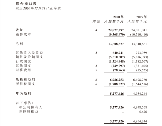 农夫山泉此前公布的年报显示,2020年全年总收入为228.77亿元,同比下滑4.8%;但归母公司拥有人净利为52.8亿元,同比增加6.6%;每股基本盈利为0.48元,同比增加4.3%。
