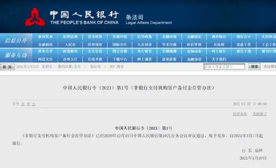 1月22日晚间,中国人民银行发布了《非银行支付机构客户备付金存管办法》(简称《办法》),旨在加强对非银支付领域的监管,规范市场秩序,保护消费者权益。该新规定于今年3月起正式实施。同时,央行于1月20日发布了《非银行支付机构条例(征求意见稿)》(简称《条例》),进一步防范支付领域的金融风险。