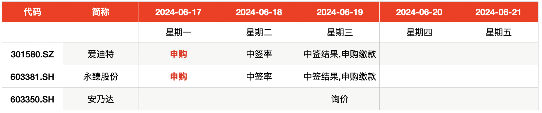 本周打新市场迎来两只行业龙头企业新股。澎湃新闻统计显示,本周(6月17日-6月21日)共有2只新股安排网上申购,分别是全球光伏边框龙头永臻科技股份有限公司(简称“永臻股份”,603381.SH)和国内口腔修复材料龙头爱迪特(秦皇岛)科技股份有限公司(简称“爱迪特”,301580.SZ)。